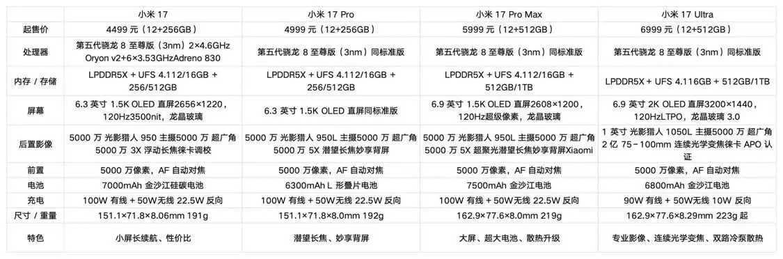 到2026年2月,17系列的产品逻辑其实非常清晰:小屏全能选小米17,大多数人的均衡甜点在小米17Pro,想要大屏和顶级续航就上小米17Pro Max,而追求影像上限与仪式感配件的,最终会落在小米17Ultra。